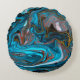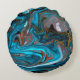 Blaue und goldene Marmorstruktur. Goldmarmor liqu Rundes Kissen
