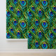 Blaue und grüne Pfauenfeathers Collage Tapete