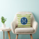 Blaue und Limon gestrichelte Muster Grüne Monogram Kissen