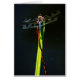 Blaue und schwarze Libelle auf grünem und rotem Gr