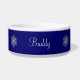 Niedliche Schüssel, damit Ihr Haustier aus isst oder trinkt. Es kennzeichnet wenige silberne Schneeflocken auf einem blauen Hintergrund. Vervollkommnen Sie für Ihren kleinen Begleiter während der Feiertage.