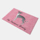 Blaue und weiße Grauhound auf rosa Herzen Fußmatte