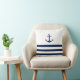 Navy blau und weiß gestreiftes nautisches Ankerkissen. Die frisch und klar aussehende Dekoration für das nautische Wohnzimmer und das Schlafzimmer. Für alle Segler und alle, die nautisch, Hamptons, Nantucket und New England Style Lieben.