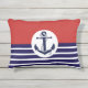 Dieses Design ist für den Innen- und Außeneinsatz ideal. Die Vorderseite dieses Akzent Kissen weist scharfe, knusprige blaue und weiße Streifen auf, unten und kräftig rot, oben. Die Mitte des Designs hat einen weißen Kreis, mit einem marineblauen Anker. Auf der Rückseite des Kissens wiederholt sich das Design des Ankers über einem roten Hintergrund.