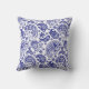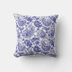 Blaue und weiße Vintage Blumenmuster Kissen