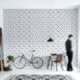 Blaue und weiße Weihnachtsbaummuster Tapete. Erfrischen Sie Ihren Platz mit diesem Bluweihnachtsbaum-Wallpaper. Ideal für eine Küche Backsplash, Bad und mehr.