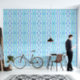 Blaue vertikale spitze Linien Tapete