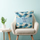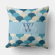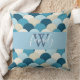 Pastellblaue Schuppen werfen Kissen mit individuellem Monogramm in elegantem Schriftart für eine perfekte Küstendekoration