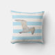 vorne: klassische, hellblaue und weiße nautische Streifen in Pastellfarben mit einer fliegenden Möwe. Zurück: ohne Vogel, nur Streifen Ein Kissen für Ihr Zuhause oder Strandhaus im Sommer!