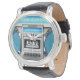 Uhr, Vintage Männeruhr mit schwarzem Lederarmband
