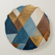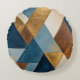 Blauer Bronzecreme und geometrisch abstrakt Rundes Kissen