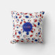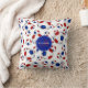 Dieses sportliche, aber mädchenhafte Fußkissen zeichnet sich durch ein zufällig arrangiertes Muster aus roten, weißen und blauen traditionellen Fußballbällen - weißer Hintergrund ist anpassbar - mit ihrem Namen und Monogramm auf einem koordinierenden blauen / roten Kreisanhänger vorne / hinten - durch katz_d_zynes aus