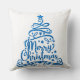 Blauer Glitzer und weißer froher Weihnachtsbaum Kissen
