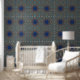 Papier mit blauem Kupfer-Graphic-Muster abziehen und kleben. Die Innenarchitekten der Mieter können jedes Zimmer personalisiert aussehen.