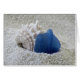 Ein perfektes Stück blaues Meerglas mit einer interessanten Muschel.