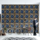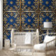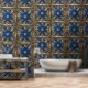 Peel und Stick Wallpaper indische inspirierte Design Rich Blue Gold Quadrate Wallpaper. Ein tolles Gaumenprojekt für Mieter, Hausbesitzer und Innenarchitekten. Erstellen Sie ein personalisiertes Aussehen für Ihr Zuhause condo Apartment Büro oder Geschäft. Dekorierte Wände verkleidet Möbel Bettkopfende Küche Backspritzer Türen oder Lagerbehälter. Den Möglichkeiten sind keine Grenzen gesetzt! Erhältlich in texturierter und glatter Vinyl. Größe 2'x4' 2'x8' 2x10' und 2'x12'.