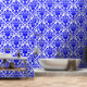 Blauer und weißer Damast Blütenschale und -stift Tapete