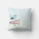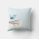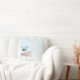 Blauer Vogel auf einem rosa blühenden Baumzweig. Dekorative Pastellkissen.