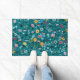 Blaues Aquamarin-grünes Rosa-Gelbblütenmuster Fußmatte
