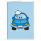 Lächelndes blaues Cartoon mit Seifenblasen.