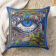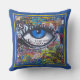 Ein zeitgenössischer, sprühfarbiger, abstrakter Graffiti-Text auf einer Stadtmauer mit blauem bösen Auge.