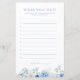 Dieses Brautparty "Wo waren sie?"-Spielblatt zeigt eine florale Wasserfarbe mit eleganten Blume in verschiedenen Blautönen - perfekt für ein "Something Blue Before I Do"-Thema.