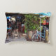 Lässig, entspannt, mit dem Fahrrad herumreiten, das sind einige der Dinge, die den komfortablen Lebensstil ausmachen, der im Originalfoto von ZoeSPEAK auf diesem Accent Kissen abgebildet ist. Ein Aqua-blaues Fahrrad lehnt sich gegen einen Pfosten vor einem Open-Air-Bar in Key West, Florida. In einer Badewanne, unter einer Markise, die der Farbe des Fahrrades entspricht, liegt ein grüner Laubbusch. Im dunklen Innern des Ortes stehen Holzstühle, an den Tischen stehen Aqua- und Kobalt-blaue Sonnenschirme. Ein Aqua-Blau-Bar vor der Tür vervollständigt das farbenfrohe Foto.