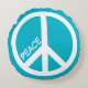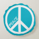 Ein blaues Kissen mit einem großen weißen Friedenszeichen und anpassbarem Text.
