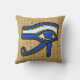 Kopfkissen mit dem ägyptischen Symbol, das Horus Auge auf Hieroglyphen. Das Horus Eye ist in blauen, gelben und schwarzen Konturen auf Hieroglyphen-Hintergrund gestaltet.