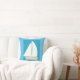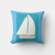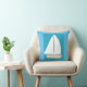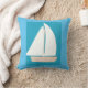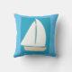 Dieses blaue Kissen wurde mit meiner Darstellung eines weißen Segelbootes auf türkisblauem Hintergrund entworfen.