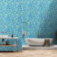 Aquamarine Blätter mit botanischem Blumenmuster in ruhiger Atmosphäre.