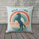 Auf diesem Kissen wird ein blaues Silhouette-Aufzuchtpferd auf einem im Retro-Stil gehaltenen, abgerundeten Stoffstreifen im Regenbogenhintergrund platziert. Der benutzerdefinierte Text über dem Bild ist ebenfalls betroffen. Momentan steht dort "Wild and Free", aber man kann es einfach auf alles ändern, was man sich vorziehen würde. Die Rückseite des Kopfkissens hat das gleiche Bild mit einem Textfeld, das Ihren Namen enthalten kann.