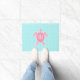 Eine Fußmatte, die eine Illustration einer rosa Meeresschildkröte über einem hellen blauen quatrefoil Hintergrund kennzeichnet. Personifizieren Sie das Monogramm.