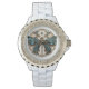 Eine wunderbare Damenuhr mit weißem Armband und grün-weiß-kariertem Ziffernblatt. Trägt sich ganz fabelhaft. Exzellenter Druck, sehr klare Farben. Schönes Design.