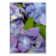 Drei Hydrangeas zeigen viele Schatten des Blaus in diesem hübschen, Blumenbild an, digitalisiert wie eine "Ölmalerei". Mit zusammenpassenden Briefmarken.