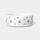 Diese fabelhafte moderne Haustierschale aus der Mitte des Jahrhunderts besticht durch Franziskaner Sternexplosionen in Blau und Gelb und den Namen Ihres Haustieres in einem lässigen Schriftart. Fügen Sie der füttre Ihres Tieres ein lustiges Element hinzu!