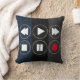 blaugraue schwarze Tech Icons Rewind Fast Foward Kissen