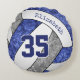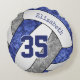 Dieses lustige Volleyballkissen für Mädchen mit individuellen Teamfarben zeigt das realistische, stylisierte Bild eines blauen, grauen und weißen Volleyballs, das ein künstlerisches, blumenkalidoskopisches Muster mit seinen blauen und grauen Paneelen - personalisiert mit ihrem Namen und Jersey-Nummer - von katz_d_zynes hat