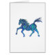 Das blaue Pferd ist auf weißem Grund gestrichen.
