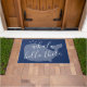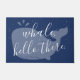 Niedlich und freundlich, dieser Blauwal, hallo dort ist Tür-Matte die perfekte Weise, jedermann zu grüßen, das zu Ihrer Tür kommt. Die blaue Hintergrundfarbe kann geändert werden, um Ihren Zuhausefarbentwurf zu passen. Elegante, handgeschriebene Typografie "Wal, hallo dort."