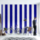 Design-Hintergrundbild-Tapete für das Muster der Muster in blau-weiß-großen vertikalen Vintagen Retrostreifen