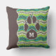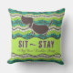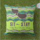 Ach, das Abendessen im Freien und die Unterhaltung im Garten oder am Pool ist unsere Lieblingszeit des Jahres. Dieses Kissen im Freien stammt aus der exklusiv von PAWSitivelyPETrageous.com entworfenen Wohnkollektion Come Sit Bleibe. An der Vorderseite befindet sich ein niedlicher Hund im Stil der Dackel mit einer einladenden Nachricht von "Sit Bleibe Wag Your Troubles Away" mit einem fröhlichen, türkisblauen, peridot-grünen und schokoladenbraunen Aufdruck. Die Rückseite hat den gleichen Aufdruck, eine große Schokoladenbrücke auf der links Seite und das Monogramm in einem großen Hundepapierdruck.