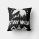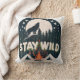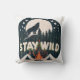 Ein Wolf steht zum Schweigen und heult gegen einen Vollmond, umgeben von einem Wald und einem Lagerfeuer zwischen zwei Zelten. Die Worte "Bleibe Wild" werden prominent angezeigt und unterstreichen ein Gefühl von Abenteuer und Natur.