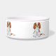Blenheim Cavalier King Charles Spaniel Dog Sitzen Napf