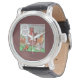Uhr, Vintage Männeruhr mit schwarzem Lederarmband