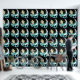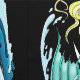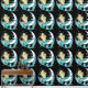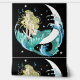 Eine blonde haarige Meerjungfrau auf einem Halbmond mit aquamarinem Schwanz mit Wasser, Wasserblasen und Sternen um sie herum. Alle gezeichnet in einem Art Deko Stil.
