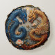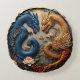 Blue and Gold Dragons in Yin Yang Design Rundes Kissen