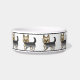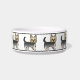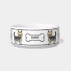 Desteis originelle Cartoon-Illustration einer niedlichen Blau- und Goldfarbe Yorkshire Terrier / Yorkie Rasse Hund. Das Hundedesign wird mehrmals auf die Schüssel gelegt. Es gibt auch eine Knochenform des Hundes mit einem personalisierbaren Textbereich für einen Namen. Oben und unten haben schwarze Linien, die als Rahmen für eine abschließende Touch des Designs dienen.