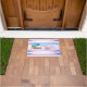 Maßgeschneiderte Türmatte in Blau und Rosa Beach House Design mit Sandbuckel und Beachball.