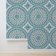 This wallpaper transforms walls into works of visual rhythm. The blue and taupe mandala pattern merges symmetry and motion, giving depth and flow to living rooms, hallways, or creative studios. The balanced hues of teal, aqua, and beige invite warmth and light, perfect for coastal or contemporary interiors seeking subtle movement and refined color.